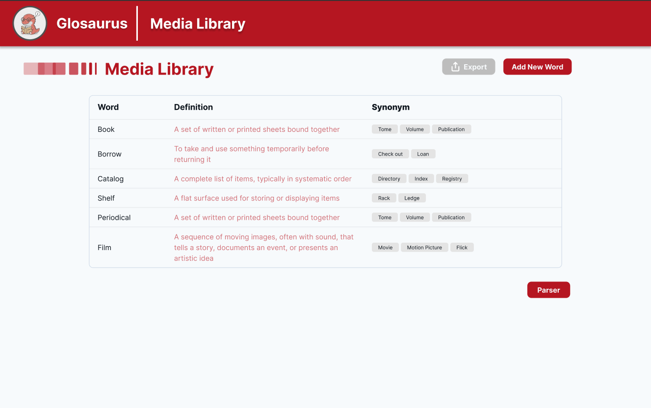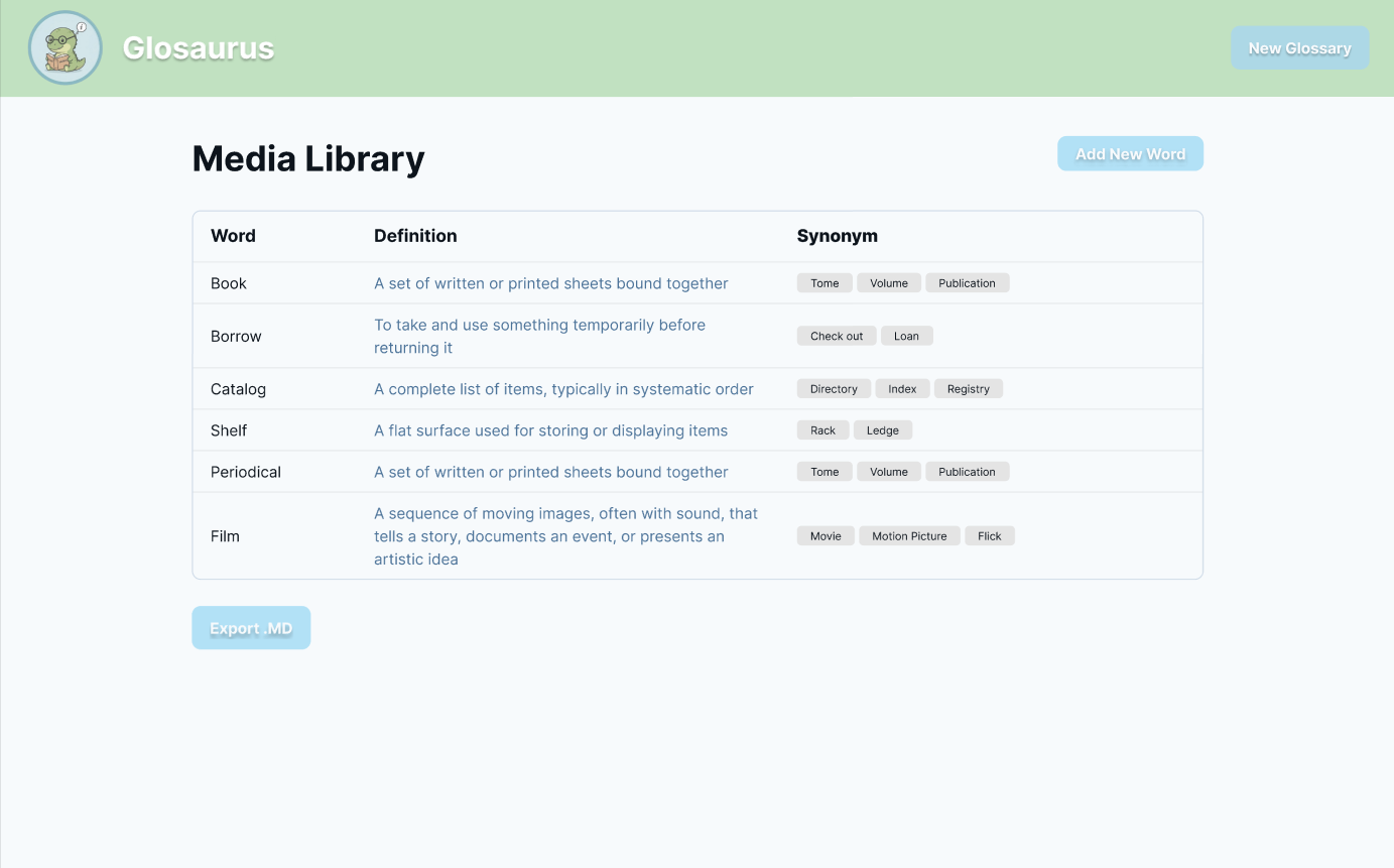 Une fois cette base obtenue, il nous a fallu créer un logo. Pour cela, nous avons également utilisé une IA générative, en nous basant sur le nom de l’application (Glosaurus) ainsi que sur son fonctionnement.